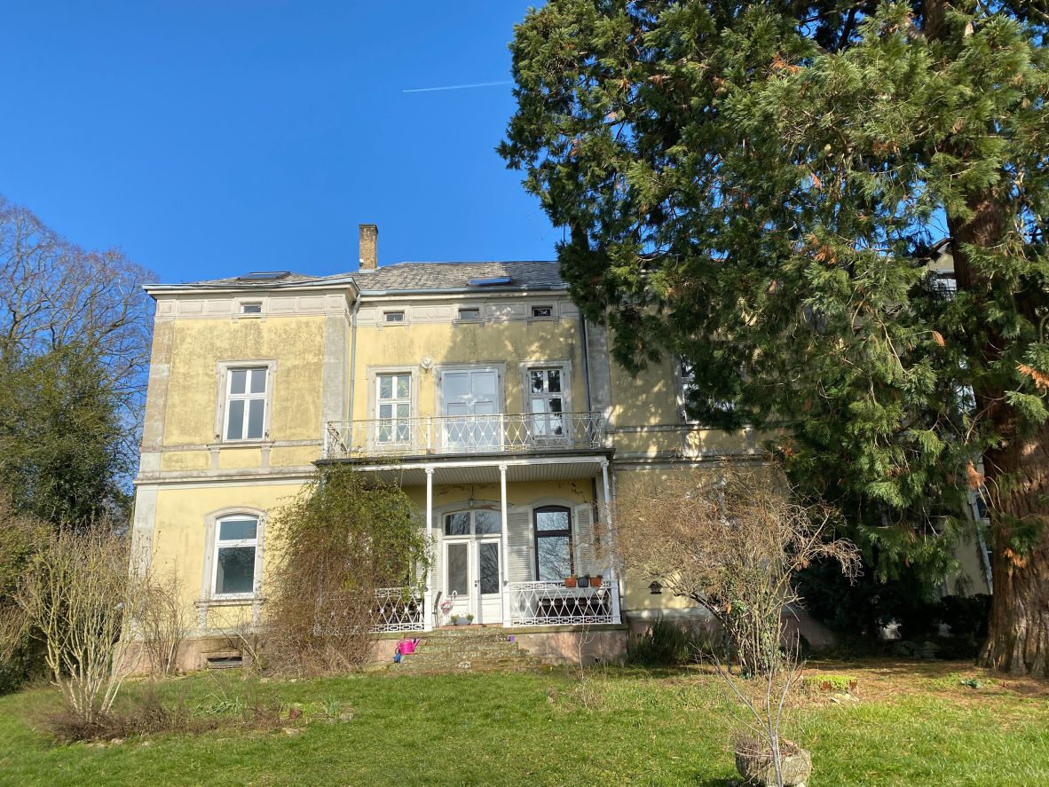 Das majestätische zweistöckige Gebäude mit seinem unregelmäßigen Grundriss erhebt sich über einem Sockelgeschoss und verfügt über ein Mezzaningeschoss. Das markante Dach, einst mit Schiefer bedeckt, bildet den krönenden Abschluss des Gebäudes. Pilaster und Gesimse gliedern die historistische Fassade, während eine Vorhalle mit dorischen Säulen und einem Dreiecksgiebel den Haupteingang mit seiner Freitreppe und dem Portal überragt. Ein einfacheres Nebentreppenhaus, das einst dem Gesinde diente, ergänzt das Gebäude. Auf der Rückseite befindet sich eine charmante schmiedeeiserne Loggia mit Balkon im Obergeschoss, und seitlich schließt sich eine weitere gemauerte Loggia an. Sowohl im Innen- als auch im Außenbereich sind zahlreiche historische Details aus der Bauzeit erhalten geblieben, darunter beeindruckende Treppenhäuser, kunstvolle Kachelöfen, prächtige Türen, Fenster, Einbauschränke und Bodenbeläge.