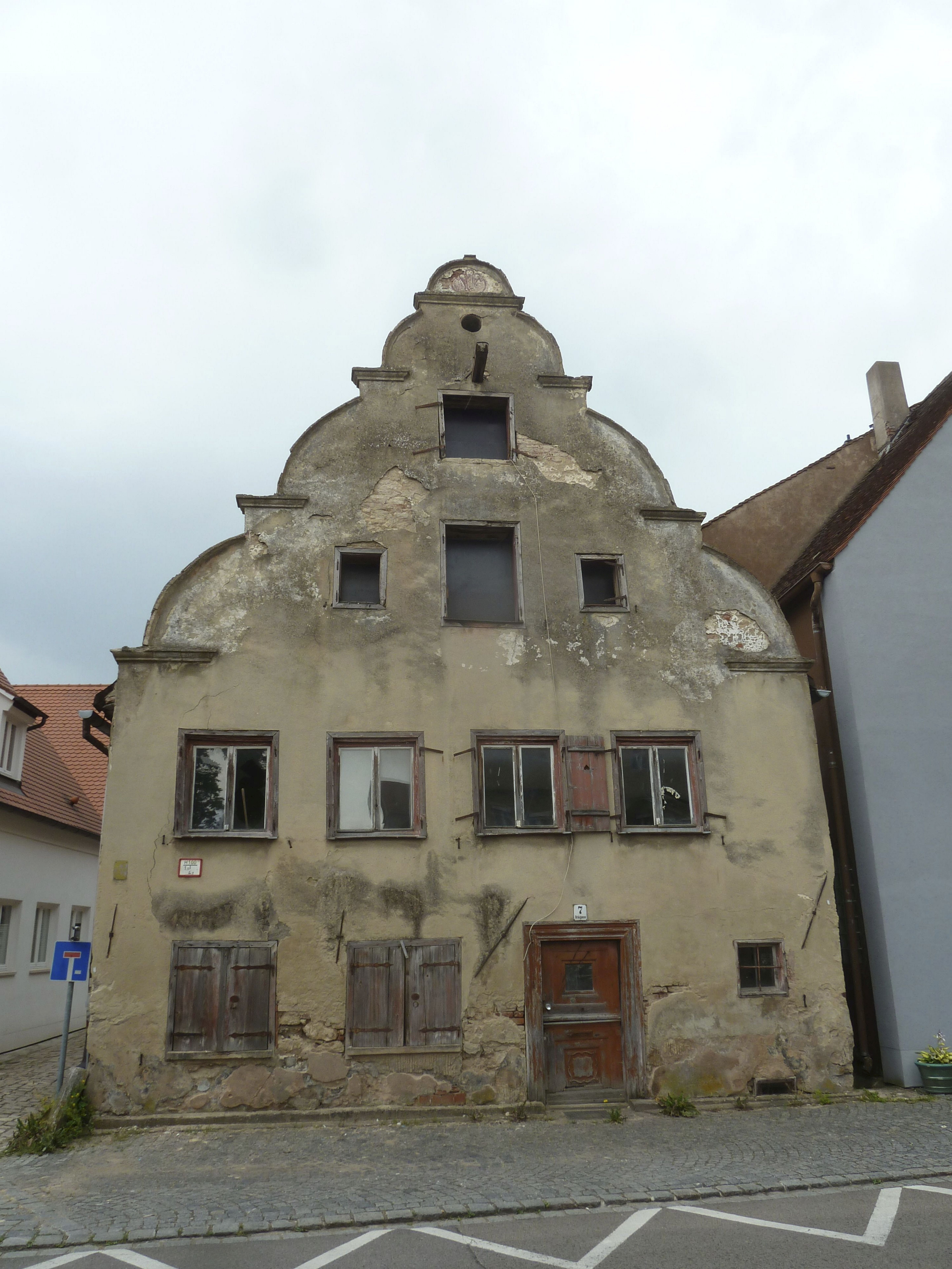 Das Eckhaus, das in der Altstadt von Nördlingen steht, ist von großer historischer Bedeutung. Es liegt in unmittelbarer Nähe zum Daniel, dem Turm der St. Georgskirche, und bildet einen wichtigen Teil des städtischen Erbes. Von 1555 bis 1766 war es die Heimat einer Bäckerei. Das zweigeschossige Fachwerkhaus, das teilweise verputzt ist, beeindruckt mit seinem massiven, abgetreppten und geschweiften Barockgiebel, der um 1700 erbaut wurde. Das Gebäude verfügt auch über charakteristische Holzaltane aus derselben Zeit auf der Rückseite.